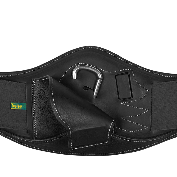 Cincha corta para monturas mono-faldón con latiguillos paralelos . Está rellenada con una espuma de alta densidad a nivel del esternón para una comodidad óptima para el caballo e incluye un gancho de seguridad central para facilitar el ajuste de accesorios como pechopetral , riendas auxiliares . Este gancho esta protegido con una solapa de cierre magnetico.